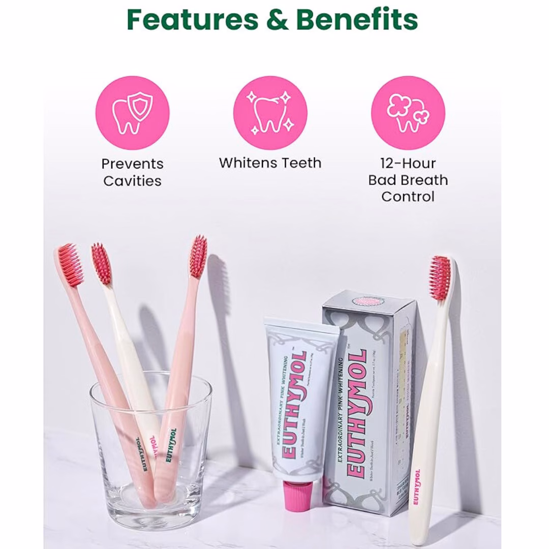 - EUTHYMOL WHITENING TOOTHPASTE (106g/3.7oz, Pack of 3) – Featuring Smart Whitening Particles (SHMP) for effective stain removal and prevention, Euthymol Whitening Toothpaste delivers visibly brighter teeth, with results noticeable from day 3, achieving significant improvement by day 5.